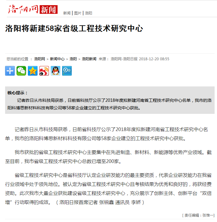 日前,省科技局公示2018年度擬建河南省工程技術(shù)中心名單,洛陽(yáng)科博思新材料科技有限公司榜上有名。省級(jí)工程技術(shù)研究中心是省科技廳認(rèn)定企業(yè)研發(fā)能力的最主要資質(zhì),代表企業(yè)研發(fā)能力在我省行業(yè)領(lǐng)域中處于領(lǐng)先地位??撇┧即舜潍@批省級(jí)工程技術(shù)研究中心,是省科技廳對(duì)科博思科研實(shí)力和科研平臺(tái)的肯定。