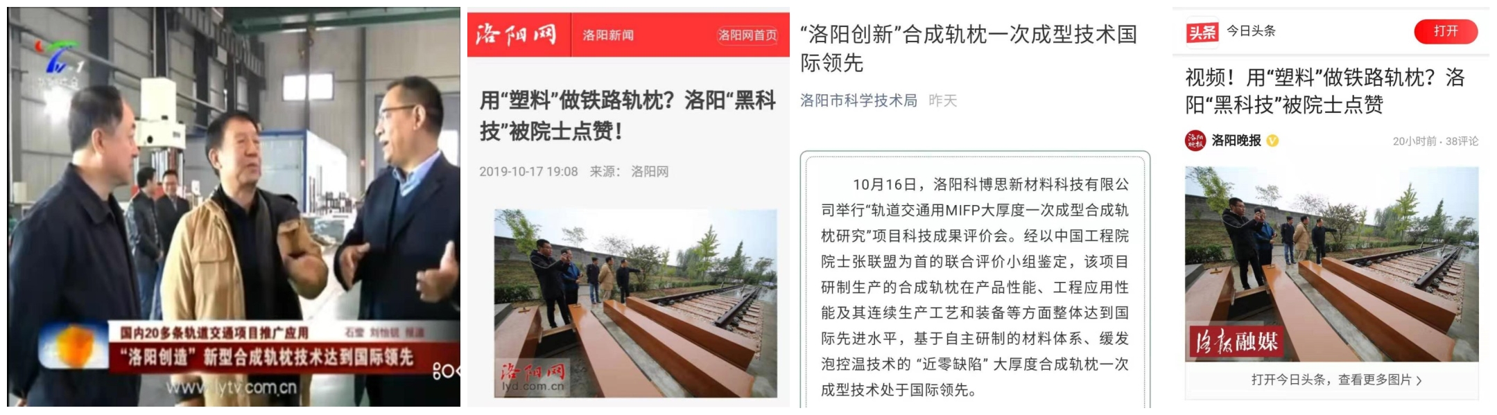 10月16日,洛陽科博思新材料科技有限公司的“軌道交通用M-IFP大厚度一次成型合成軌枕研究”項目科技成果鑒定評價會在洛陽圓滿完成。經(jīng)以中國工程院院士張聯(lián)盟為首的聯(lián)合評價小組鑒定,公司研制生產(chǎn)的M-IFP大厚度一次成型合成軌枕在產(chǎn)品性能、工程應(yīng)用性能及其連續(xù)生產(chǎn)工藝和裝備等方面整體達到國際先進水平,基于自主研制的材料體系、緩發(fā)泡控溫技術(shù)的 “近零缺陷” 大厚度合成軌枕一次成型技術(shù)處于國際領(lǐng)先。河南日報、洛陽日報、洛陽電視臺、洛陽晚報、市科技局、今日頭條、《世界軌道交通》等媒體紛紛進行了報道,給予了高度評價和贊譽!